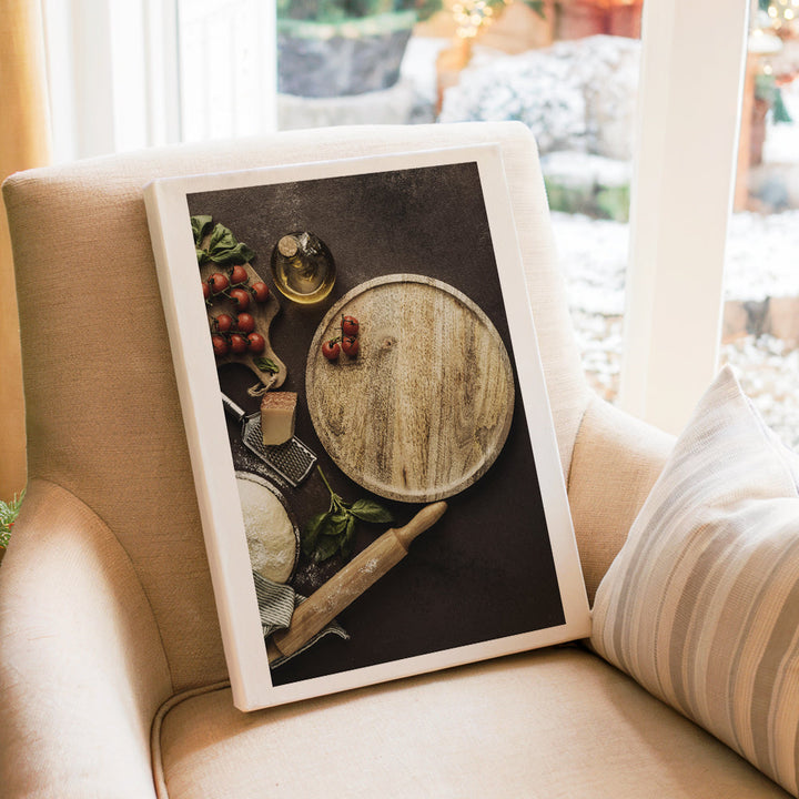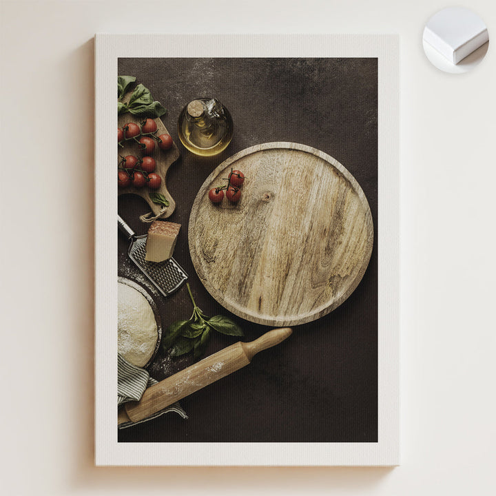Pizzatészta paradicsommal deszkán