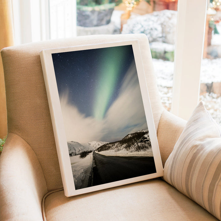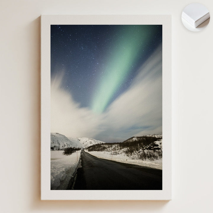 Sarki fény havas út felett